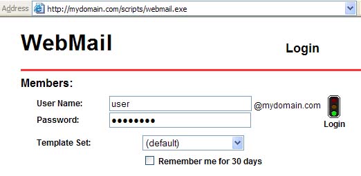 An alternative to 1) and 2) above is to display an edit box allowing a fully specified login. To setup webmail this way remove the thext "@dynarithmic.com" from the login.tpl file for the template set that you are using.